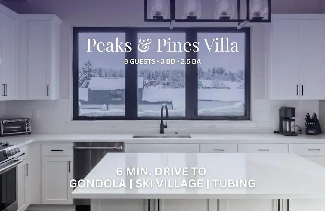 A Peaks & Pines Villa se abre para uma vista a cidade.